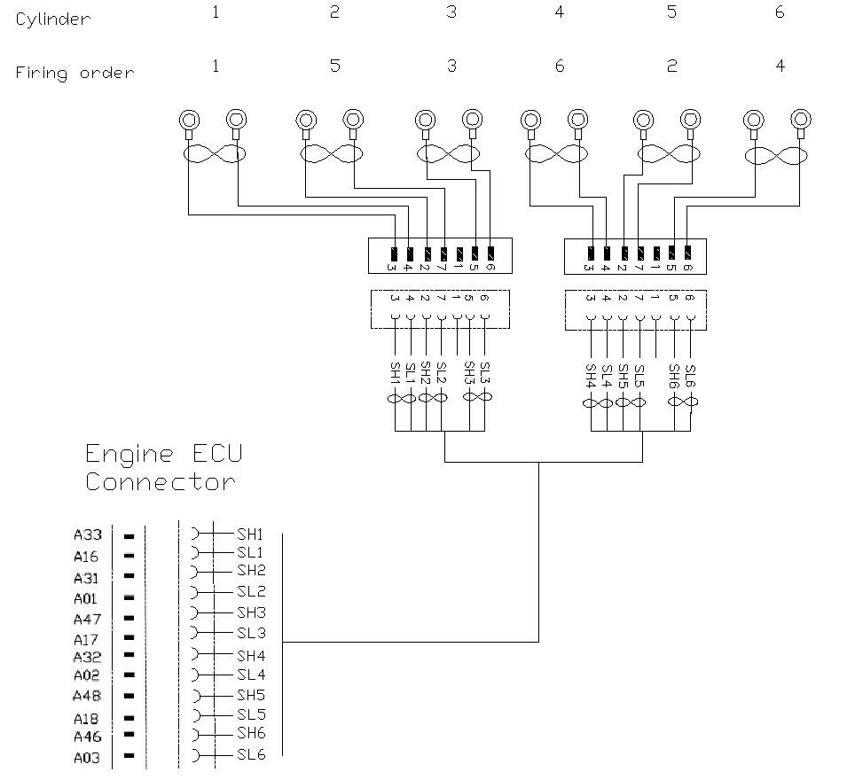 The injector harness for the 6-cyl engine.