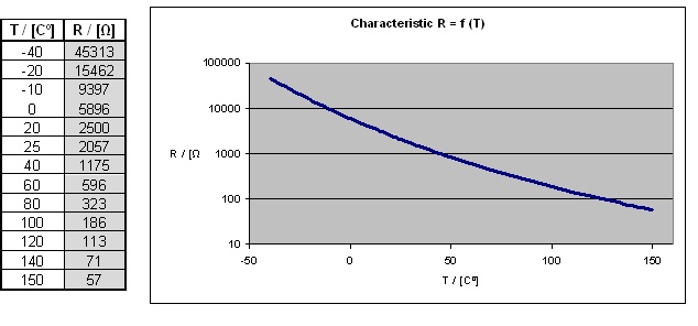 At 20ºC = 2.5 k ohm At 100ºC = 0.186 k ohmThe fuel temperature sensor characteristics are shown in figure Characteristics, Fuel temperature sensor.
