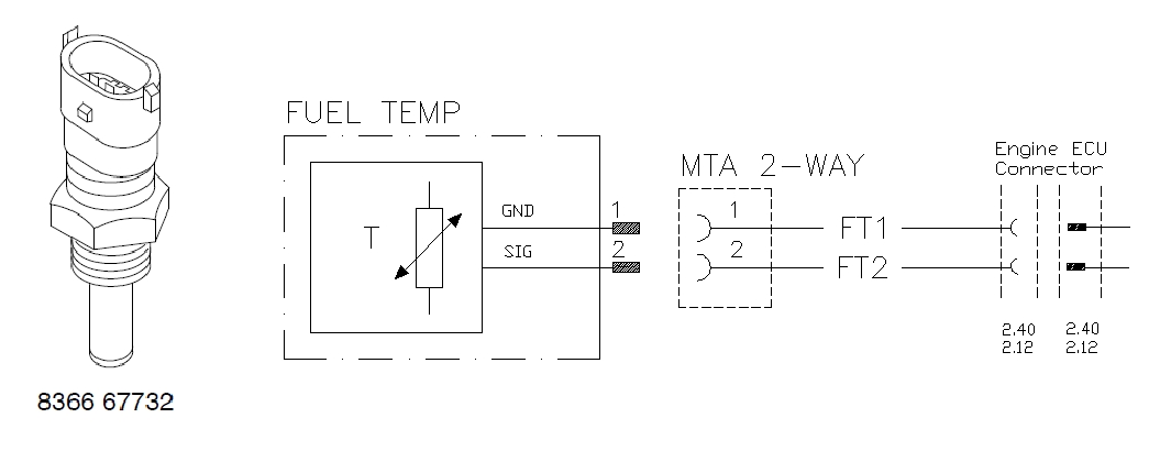 EDC17CV41+ 2.12 Analog input EDC17CV41+ 2.40 GroundThe fuel temperature sensor is shown in figure ECU connection EDC17CV41+, Fuel temperature sensor.