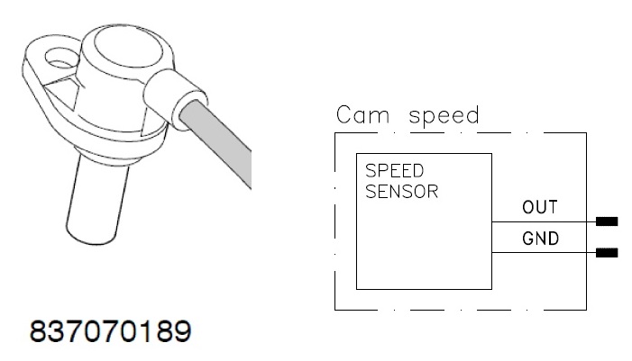 The camshaft speed sensor measures the engine speed from camshaft. The sensor is an inductive sensor which reads the trigger wheel mounted on the camshaft