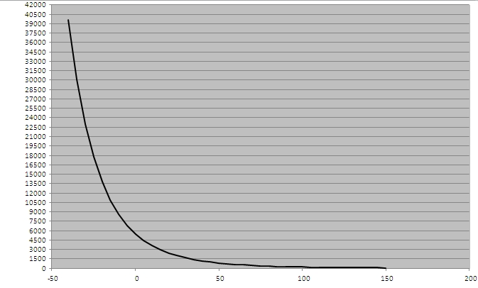 At 25ºC = 2 kohm At 100ºC = 197 ohm