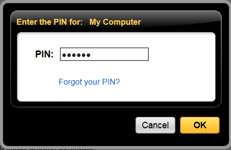 The procedure may be saved at any time. You can exit Service Tool and continue the procedure from where you left. Internet connection is required in the phase when the procedure communicates with EEMService.com. During this phase, Symantec PKI Client might ask for your certificate PIN code (which you selected yourself).