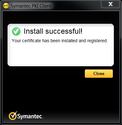 Symantec PKI Client should now say the installation was successful. Click Close. You may also close Internet Explorer now.