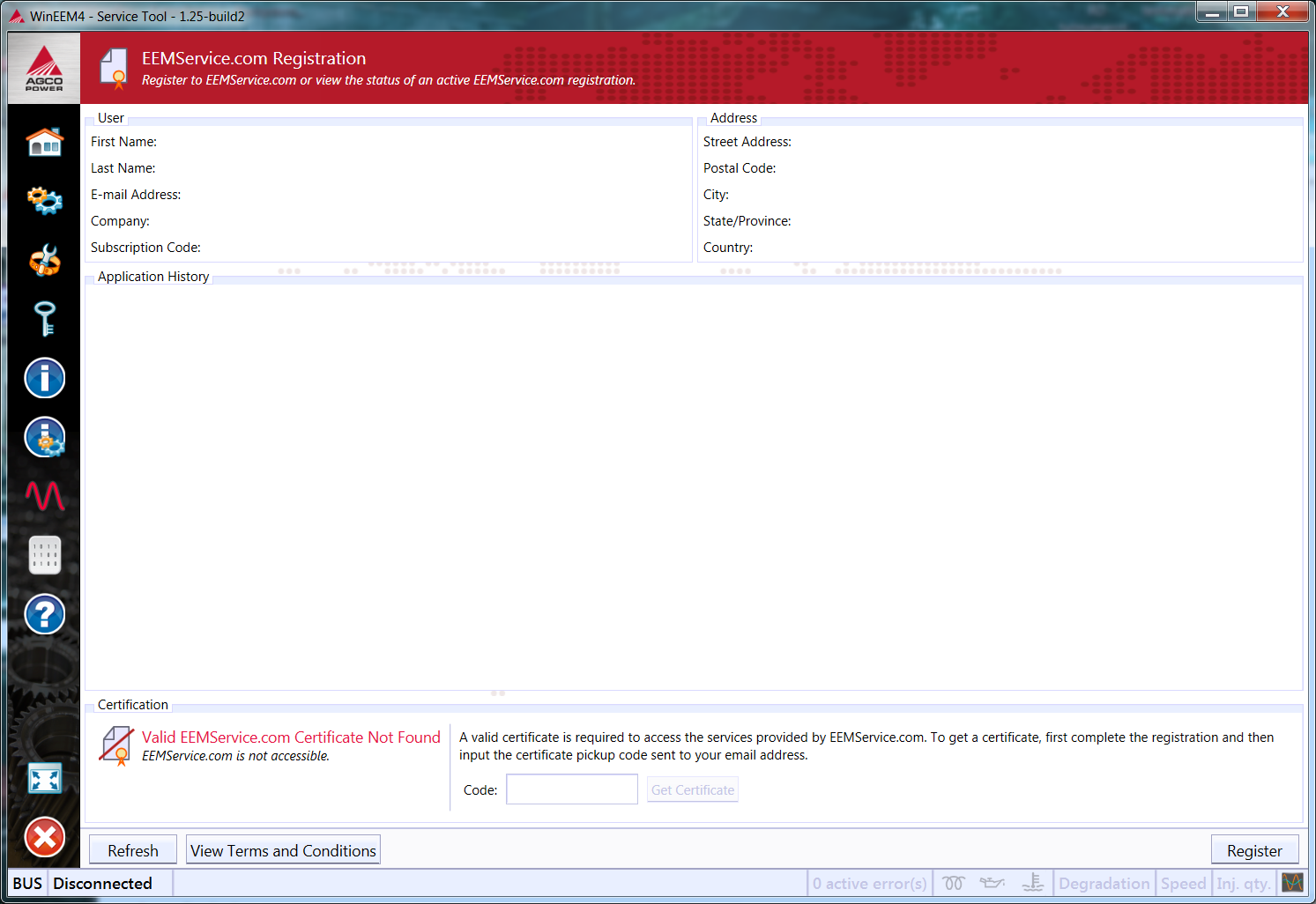 Open WinEEM4 Service Tool and select Register To EEMService.com from the home view.