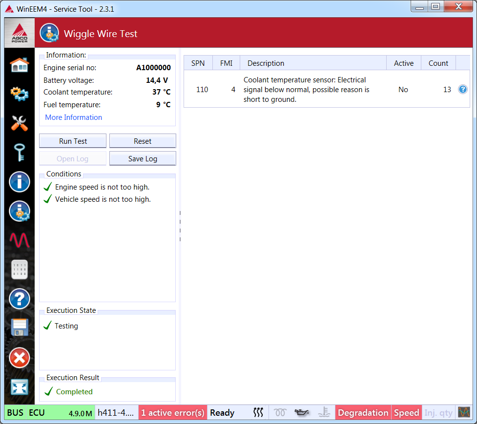 This test bypasses normal diagnostic filtering times for certain faults. This increased sensitivity is intended to find sporadic faults from the engine management system.