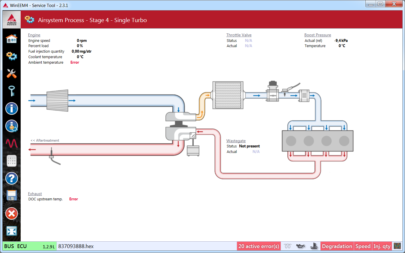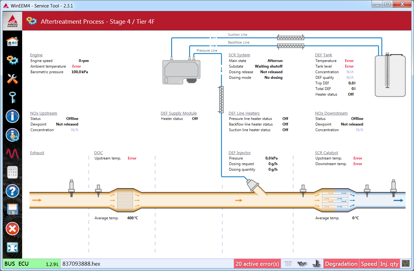 The Degradations shows the current degradation level, if there are active speed or injection quantity reductions and possible reasons for reductions.